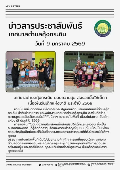 ยินดีต้อนรับเข้าสู่เทศบาลตำบลคุ้งกระถิน ติดต่อสอบถาม เบอร์โทรศัพท์: 032 738 755 งานป้องกันฯ : 082-290-6069 แจ้งเหตุไฟไหม้ : 096-842-585